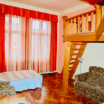 This cosy fourth-floor walk-up apartment offers a practical arrangement with a floor sleeping. Cozy 40sqm one-bedroom apartment on the fourth floor. The living room features a comfortable sofa, a dining table and possibly a single bed, which might be